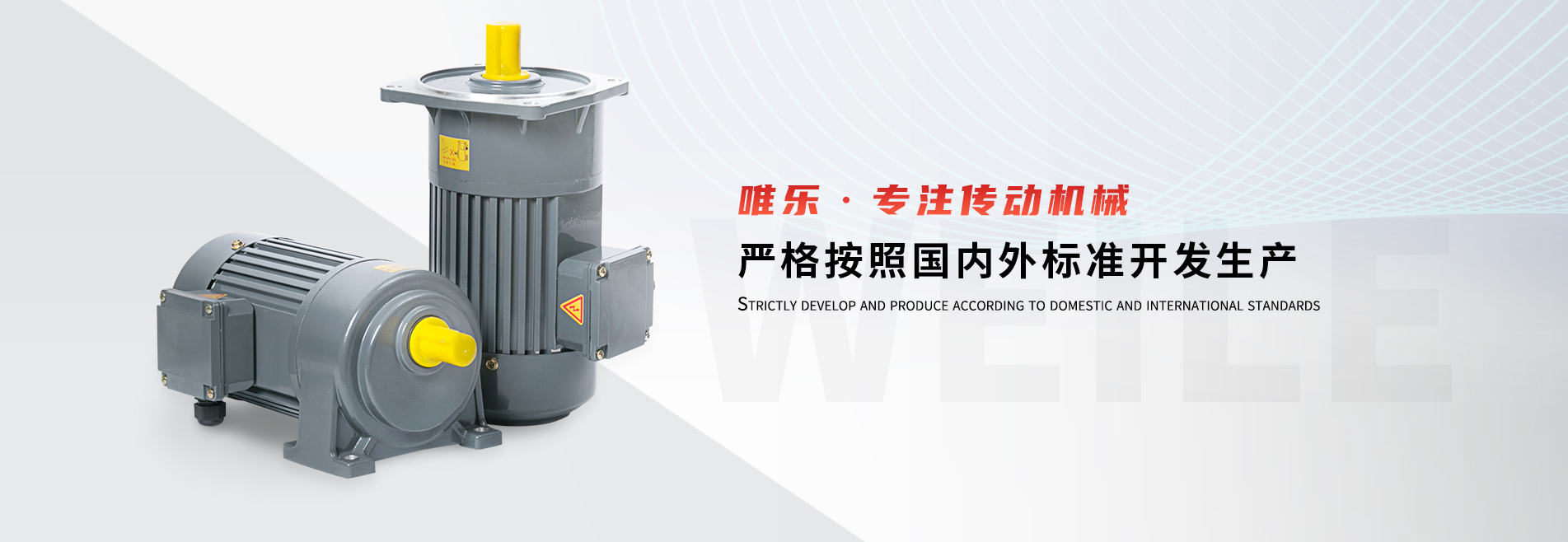 唯樂工業(yè)設(shè)備有限公司座落在風(fēng)景秀麗的溫州永嘉工業(yè)重鎮(zhèn)-浙江省溫州市甌北鎮(zhèn)。公司主要從事生產(chǎn)銷售“電動(dòng)機(jī)” “減/變速機(jī)” “齒輪減速馬達(dá)”“硬齒面減速機(jī)”四大類產(chǎn)品。